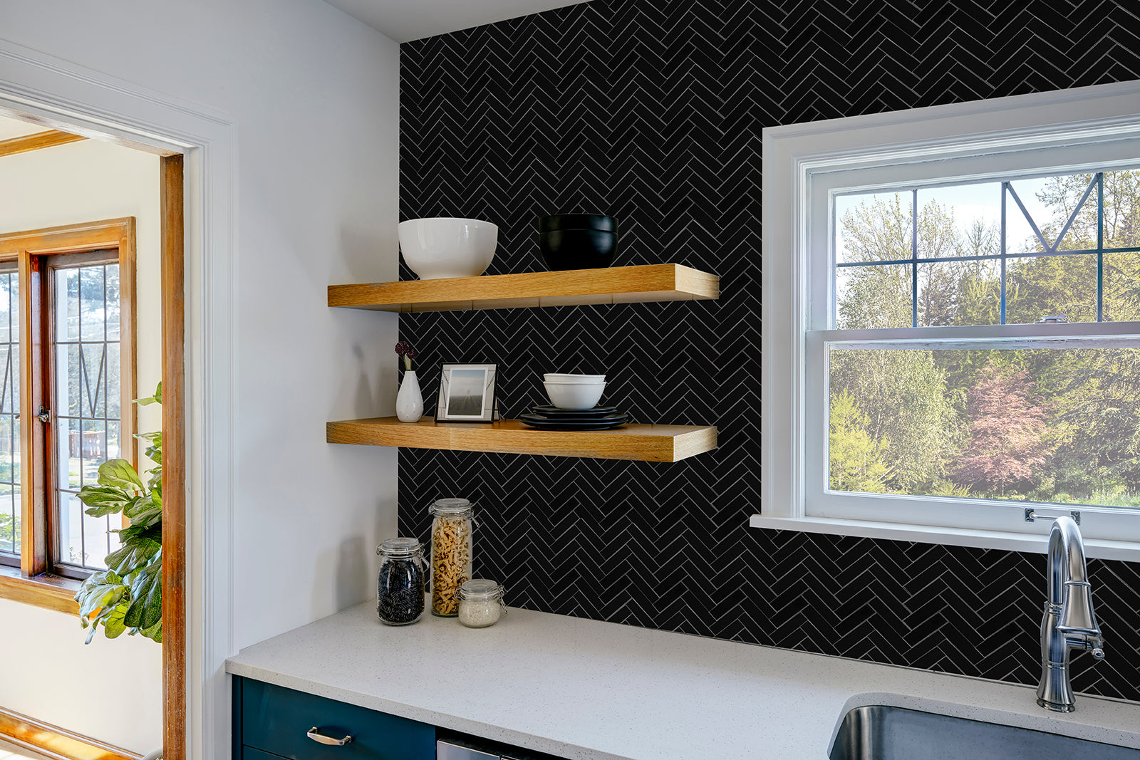 Our peel and stick herringbone tiles let you upgrade any space in minutes. Just peel, stick, and enjoy a classic, elegant look for walls, backsplashes and more—no tools, no mess