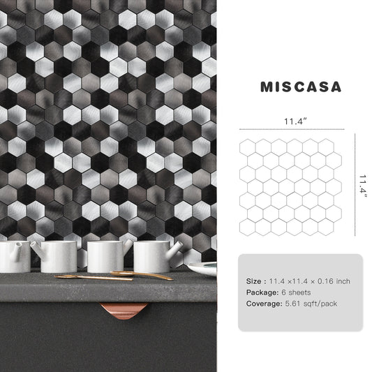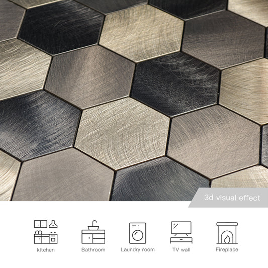 Mix Black Hexagon Aluminum Peel and Stick Wall Tile