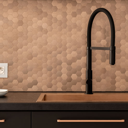 Mix Brown Hexagon Peel and Stick Backsplash Tile