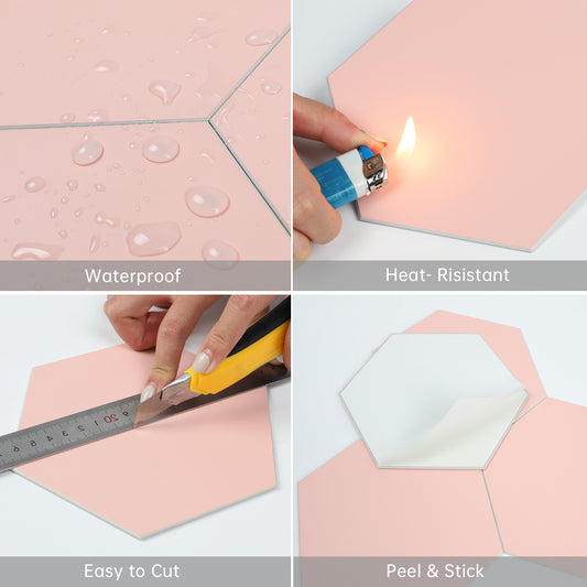3D Pink Long Hexagon Peel and Stick Wall Tile