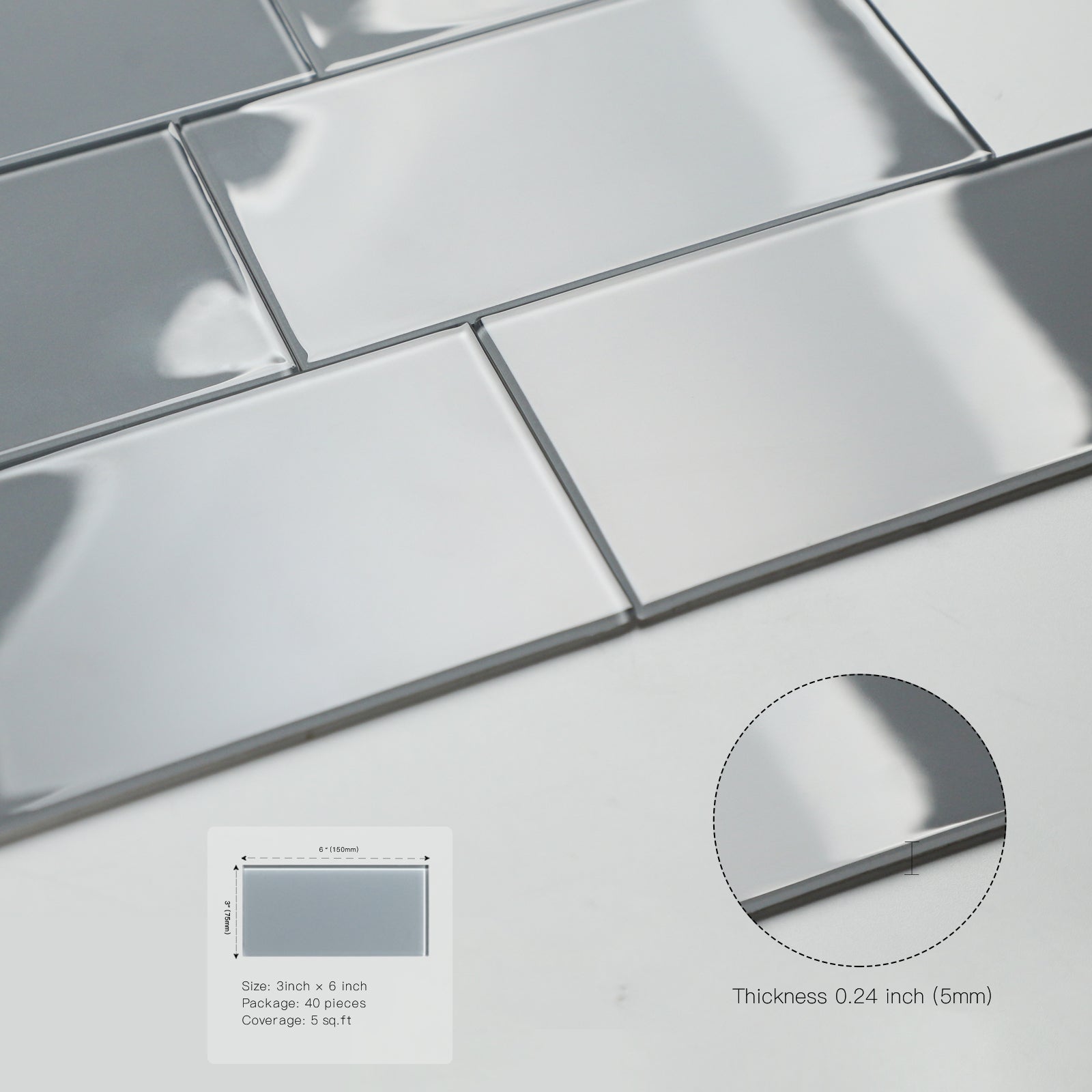 - What You Get: You will get 40 piece of peel and stick glass tiles. Each tile is 3 x 6 inches. Easy to clean the dust, water and stains on the surface with a damp cloth. Attention: kitchen backsplash tiles can not contact with flames directly.